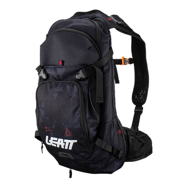 Leatt uses a vertical HydraPak high-flow bladder with an auto shut-off bite valve, feed tube routing can be either over the shoulder or under the arm. If you’re looking for impact protection for your back, there is an option to purchase a CE impact-tested and certified insert, a handy Hi-Viz rain cover is included should the heavens open to keep the bag dry. One size fits all!